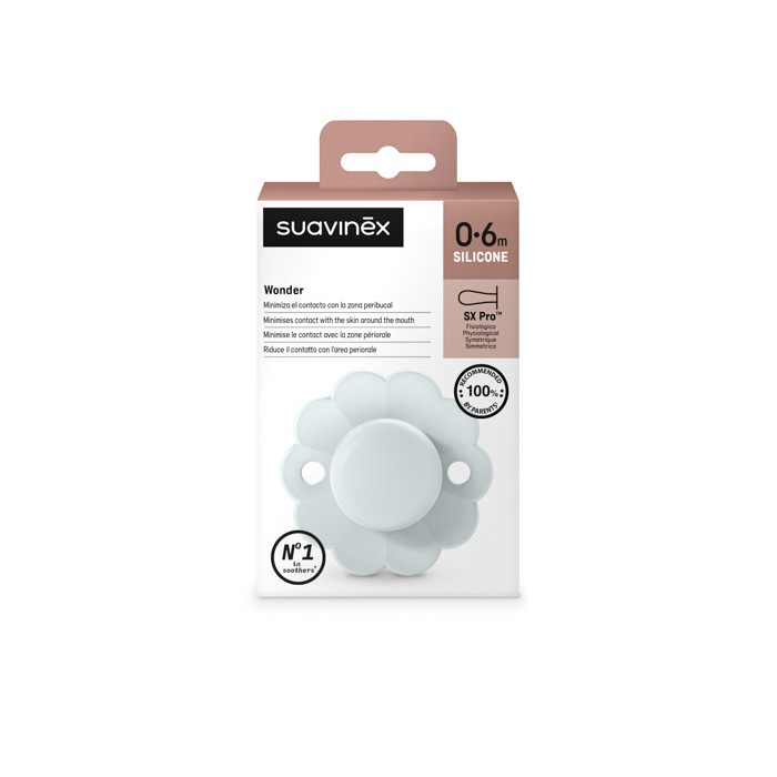 Фізіологічна пустушка Suavinex Wonder створена для малюків від народження до 6 місяців з урахуванням природного розвитку ротової порожнини. Фізіологічна форма соски сприяє правильному положенню язика та забезпечує комфорт під час щоденного використання.