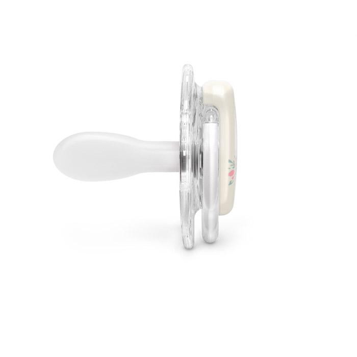 Світло-бежевий колір із рожевими квітами надає пустушці ніжного та охайного вигляду. Декоративний дизайн є частиною колекції Poetry, яка поєднує естетику та функціональність.