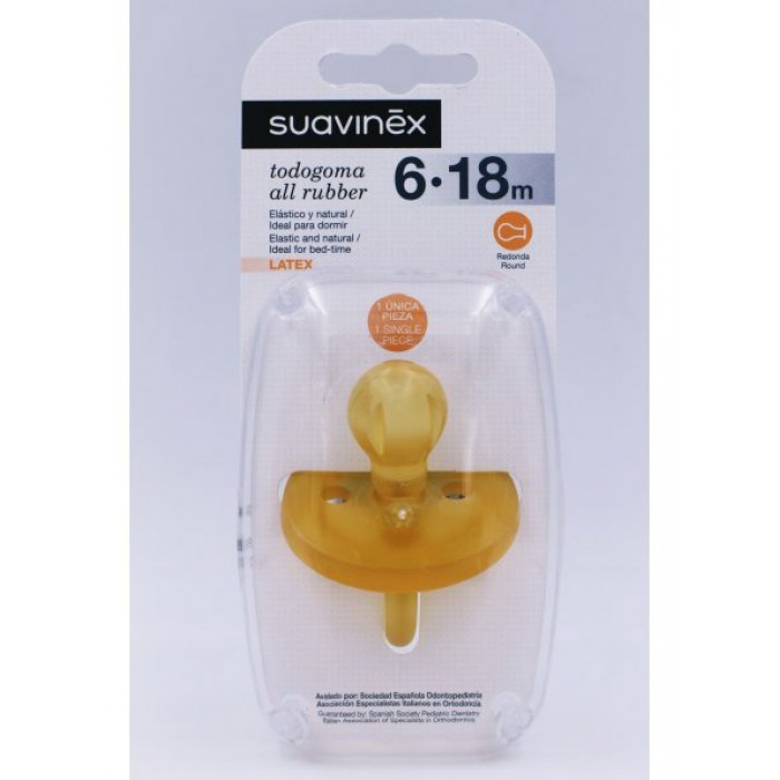 Латексна пустушка Suavinex призначена для дітей віком від 6 до 18 місяців і створена з урахуванням потреб малюків у період активного росту. Натуральний латекс забезпечує м’якість і еластичність під час смоктання.