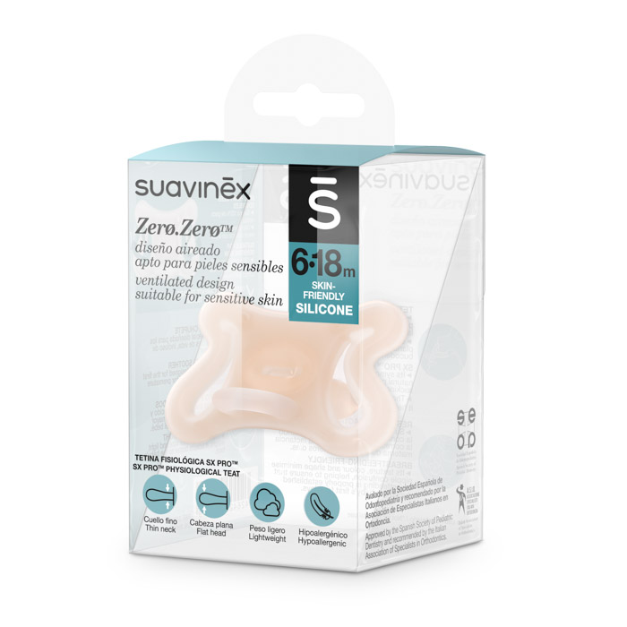 Пустушка силіконова фізіологічна Suavinex ZERO.ZERO, 6–18 міс, нюдова