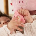 Форми та текстури елементів іграшки розроблені так, щоб дитина могла їх чіпати, хапати, тягнути - це допомагає розвивати тактильні відчуття та моторику. Одна іграшка виконує відразу кілька завдань: малюк може дивитися в безпечне дзеркальце, трясти як брязкальце, жувати прорізувач і досліджувати різні тканини. До того ж, кубик легкий, безпечний і адаптований під маленькі ручки.