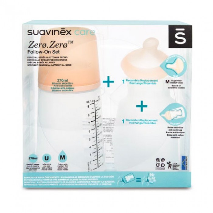 Антиколиковый набор Suavinex Zero.Zero 270 мл — это комплект с бутылочкой из коллекции Zero.Zero™ от Suavinex, разработанный для кормления с антиколиковой системой, которая уменьшает попадание воздуха в напиток во время кормления и снижает риск раздражения животика. Бутылочка из серии Zero.Zero воспроизводит форму и ощущения, близкие к естественному кормлению, а мягкая силиконовая соска адаптирована для комфортного сосания и облегчения перехода между грудным кормлением и использованием бутылочки. :contentReference[oaicite:1]{index=1}