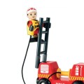 В наборе: деревянная пожарная машина со звуком и светом, прицеп со шлангом и лестницей, подвижная фигурка пожарного.