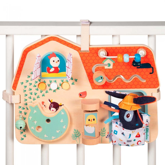 Бизиборд Lilliputiens «Ферма» — развивающая панель с продуманными деталями и удобными креплениями: её легко взять в дорогу, зафиксировать на коляске или играть дома. Бельгийский дизайн и внимание к мелочам делают игру не только полезной, но и визуально привлекательной.