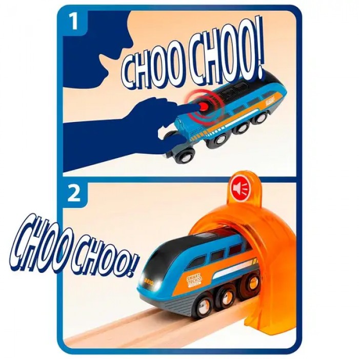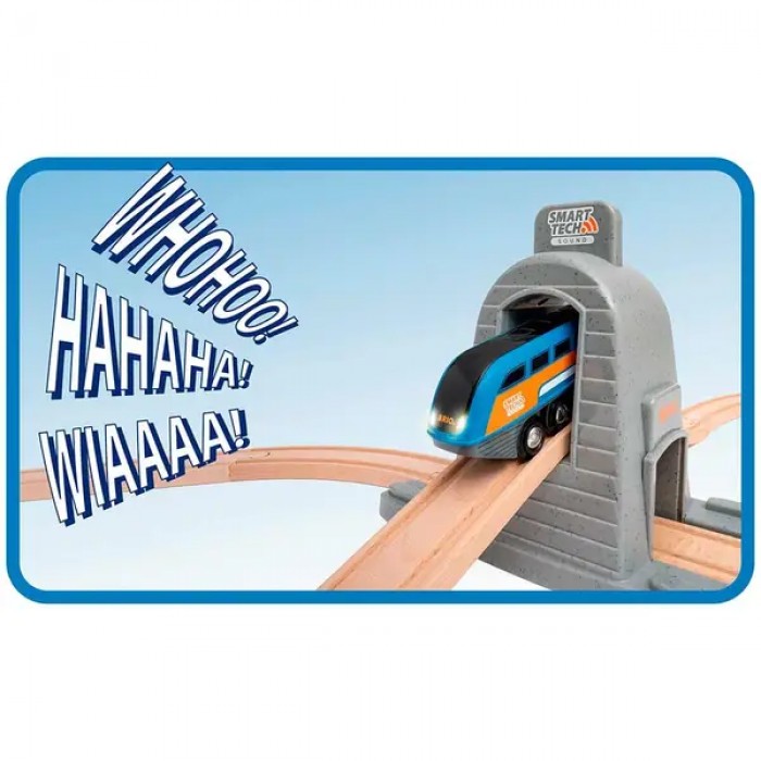Технология Smart Tech Sound позволяет локомотиву автоматически реагировать на умные тоннели и аксессуары. Достаточно проехать под тоннелем — и поезд выполнит заданную функцию: остановится, замедлит ход, изменит направление движения или воспроизведёт звук.