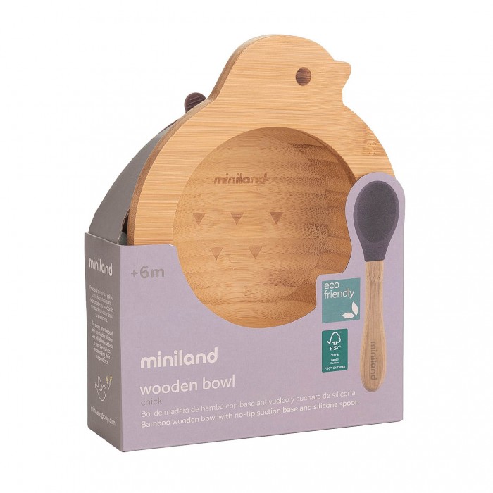 Набор состоит из глубокой тарелочки и ложки из натуральных безопасных экологически чистых материалов - 100% бамбука, сертифицированного FSC, и пищевого силикона.
