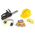 Игрушечная цепная пила Klein Bosch с набором оборудования: варежки, защитные очки, звукоизоляционные наушники, шлем. Для детей от 3 лет.