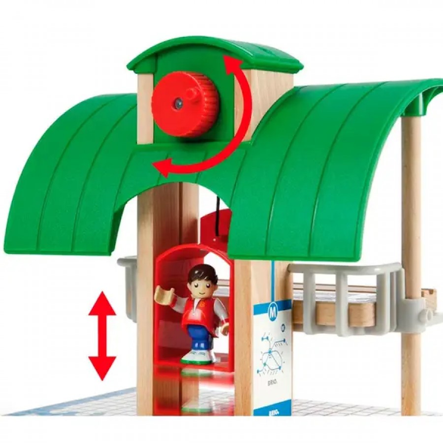 Забирайте пассажиров, которые ожидают на платформе станции метро, а затем катайте их по городу на поезде метро. Когда вы его возите — включаются фары и звук, работающие от батареек. Пассажиры точно услышат подъезжающий поезд к следующей станции. Остановитесь на верхнем уровне станции, дайте выйти пассажирам и опустите их на нижний уровень с помощью механического лифта. А теперь направляйтесь на грузовом поезде в порт и используйте низкоуровневый кран, чтобы с помощью магнита выгрузить груз на проходящий паром. Проезжайте на поезде по ярко-красному туннелю метро, пройдите через скалистые утесы и выезжайте на дорогу. Загрузите грузовики оставшимся грузом, пройдите через железнодорожный переезд со шлагбаумом и продолжите путь по бездорожью по специальным участкам дороги. Каждый элемент полностью совместим с другими наборами, аксессуарами и поездами BRIO.