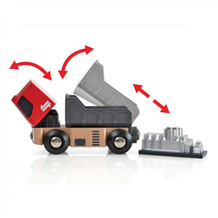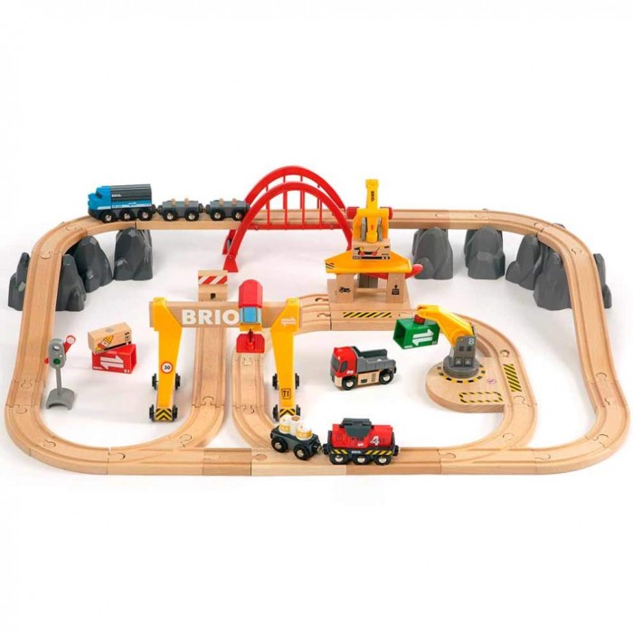 Игровой набор BRIO с грузовым поездом создан для увлекательных и реалистичных сценариев погрузки и разгрузки. Ребёнок может перевозить грузы через подвесной мост, по горным путям и к рабочей зоне, где самосвал и краны готовы принять доставку.