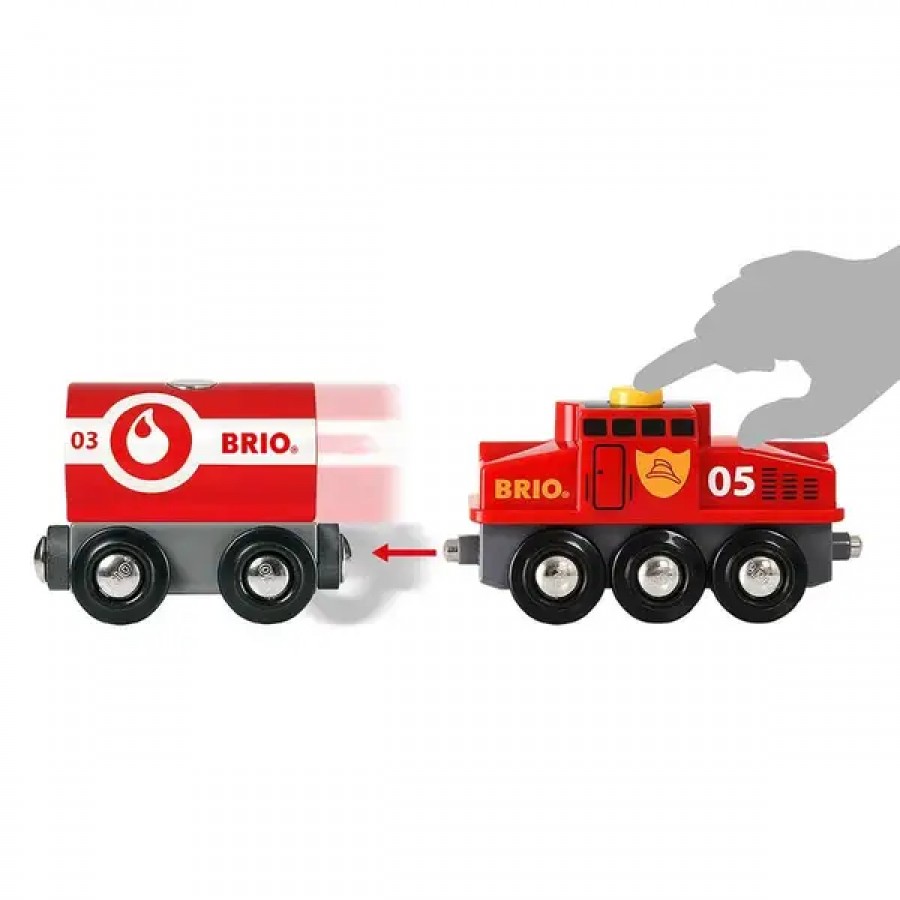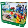 Отличное дополнение к коллекции BRIO и масса веселья для ребенка. К месту пожара на пожарном поезде и вертолете спешат пожарные. И еще помощь в пути: полицейский мотоцикл выезжает из полицейского участка, а скорая помощь едет с мигающими фарами и включенными сиренами. Как только мир спасен, команда останавливается у красной станции, чтобы пополнить запасы воды и быть готовыми к следующей чрезвычайной ситуации.