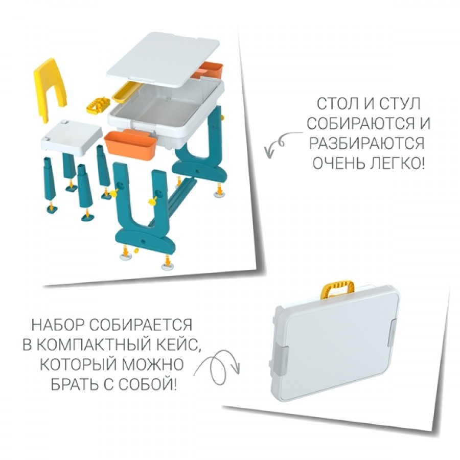 ● Стол и стул собираются/разбираются очень легко и не имеют острых углов, что обеспечивает высокую безопасность. Стол выдерживает нагрузку до 100 кг, стул до 80 кг. В сложенном виде набор весит 6 кг.