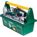 - В набор входит емкий ящик для инструментов с удобной ручкой и 15 элементов.