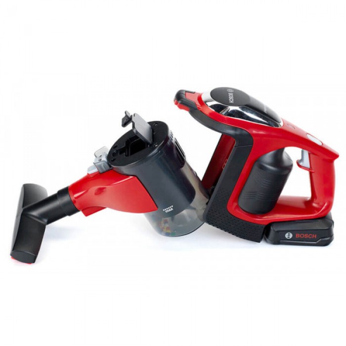 - Современный детский пылесос Klein Bosch имеет вращающуюся и съемную половую насадку с колесиками для защиты пола.