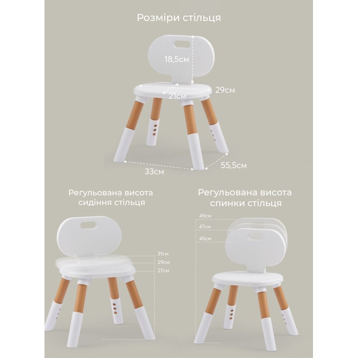 Стульчик идеально подходит для набора детской мебели POPPET «Мультивуд 3 в 1» .