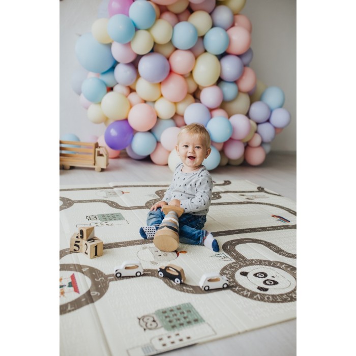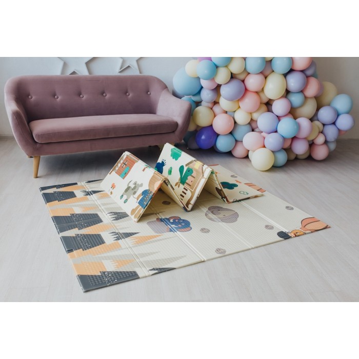Детский двусторонний складной коврик POPPET – это безопасная, комфортная, стильная зона для игр и развития. Коврик предназначен для детей с рождения до 7 лет. Это универсальное складное покрытие подойдет для выкладывания на животик и ползания (0-9 месяцев), первых шагов (9-12 месяцев), обучения (1-4 года) и активных игр (4-7 лет).