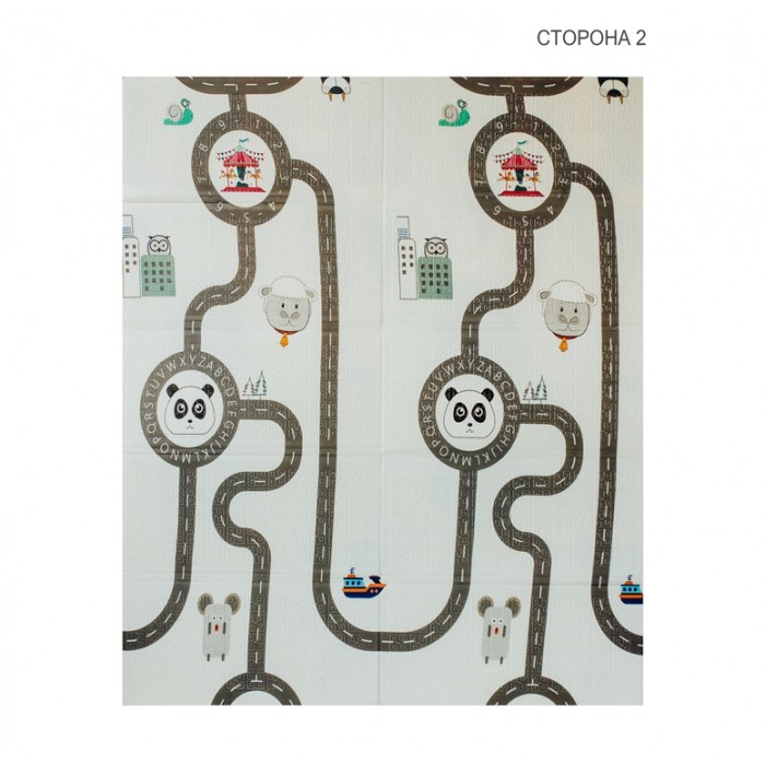 На каждой стороне коврика изображены яркие и жизнерадостные тематические рисунки, которые помогут в обучении, познании мира, ориентации в пространстве и развитии воображения. Обе стороны коврика – замечательное решение для родителей, которые хотят совместить расцветку для игр ребенка, и приятный интерьерный рисунок.