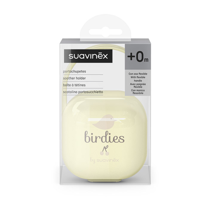 Компактная форма позволяет легко поместить футляр в сумку или рюкзак для мамы, а также закрепить на коляске. Светло-жёлтый цвет из коллекции Birdies выглядит мягко и позитивно, подчёркивая фирменный стиль Suavinex.