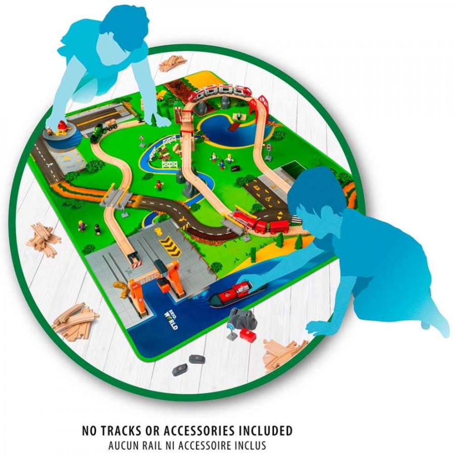 Окунитесь в игру на коврике, оформленном в тематике BRIO World. Этот игровой коврик с забавным и красочным дизайном идеально подходит для поездов и других транспортных средств. Здесь есть аэропорт, поля, грузовая гавань для парома и живописные сельскохозяйственные районы.