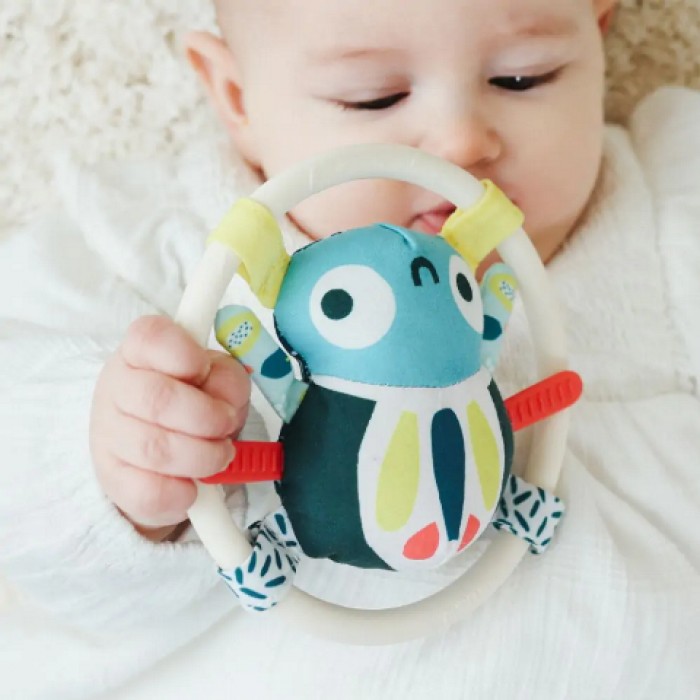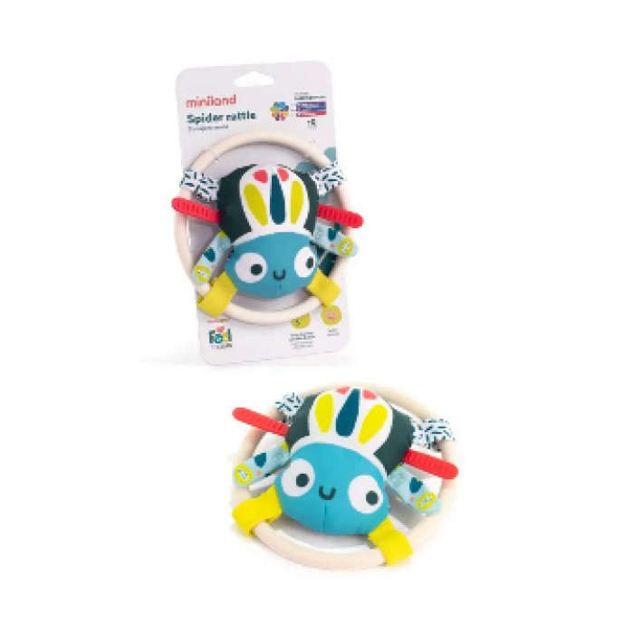 Кольцо прорезывателя изготовлено из изготовлен из силикона, в середине кольца расположен милый текстильный паучок. Лапки паучка имеют текстуру которая облегчат боль, вызванную прорезыванием зубов.