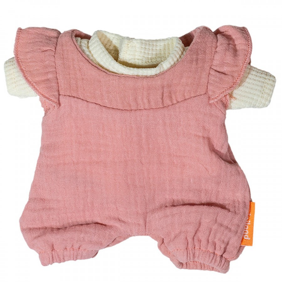 Стильный комплект для пупса Miniland 21 см состоит из футболочки в молочном цвете и милого розового песочника. В наборе идет вешалка, поэтому любимый комплект не затеряется и не помнется. К тому же, малыш таким образом учится аккуратности. Одежда изготовлена из муслина.