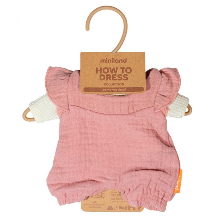 Одежда выполнена из мягкого муслина — приятного на ощупь, дышащего и комфортного материала, который легко надевать и снимать во время игры. В комплект входит вешалка, что помогает ребёнку хранить одежду аккуратно и формировать полезные навыки ухода за игрушками.