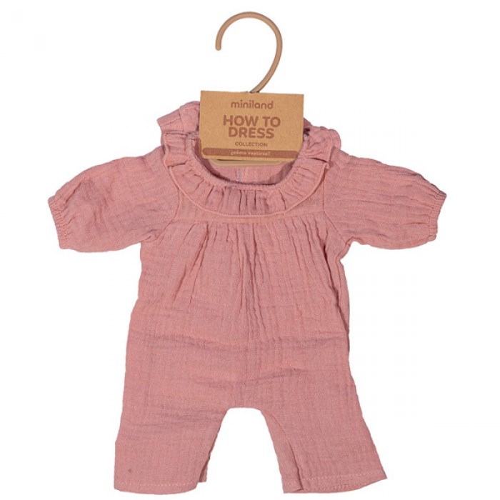 Одежда выполнена из мягкого муслина — дышащего и приятного на ощупь материала, который комфортен для игры и переодеваний. В комплект входит вешалка, что помогает ребёнку аккуратно хранить одежду и формировать полезные игровые привычки.