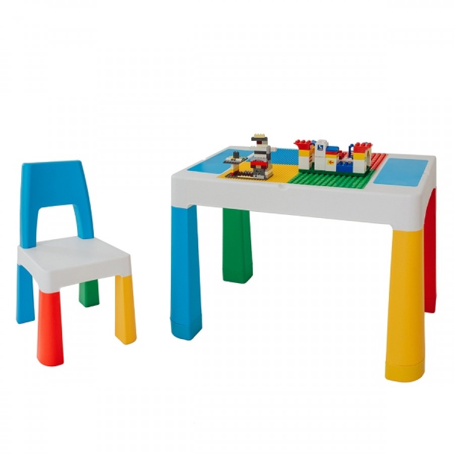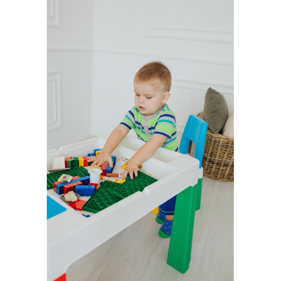 ● Столешница стола может превращаться в оригинальную игровую панель для конструктора LEGO и DUPLO и их аналогов, а также в поверхность для рисования, письма, занятий или обеда.