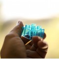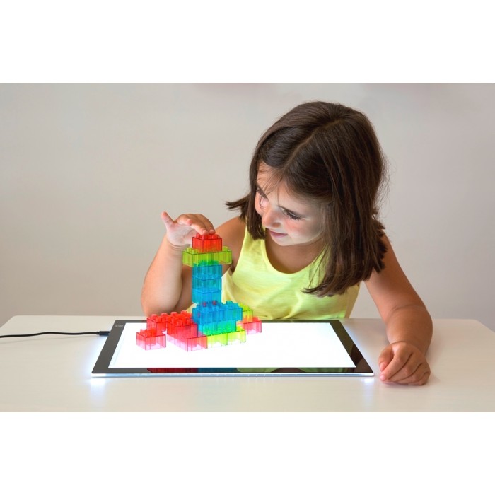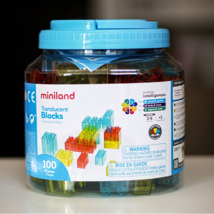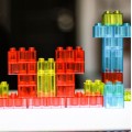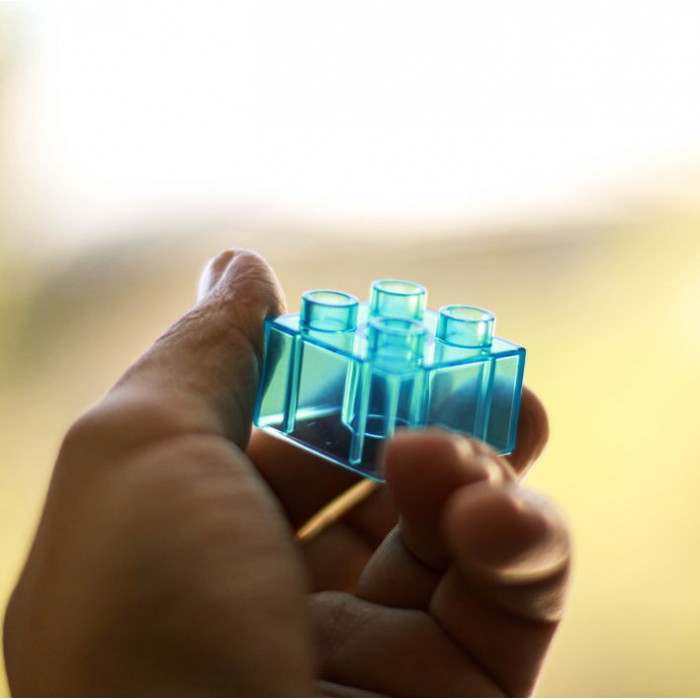 Конструктор, состоящий из 100 полупрозрачных деталей разного размера и цвета.