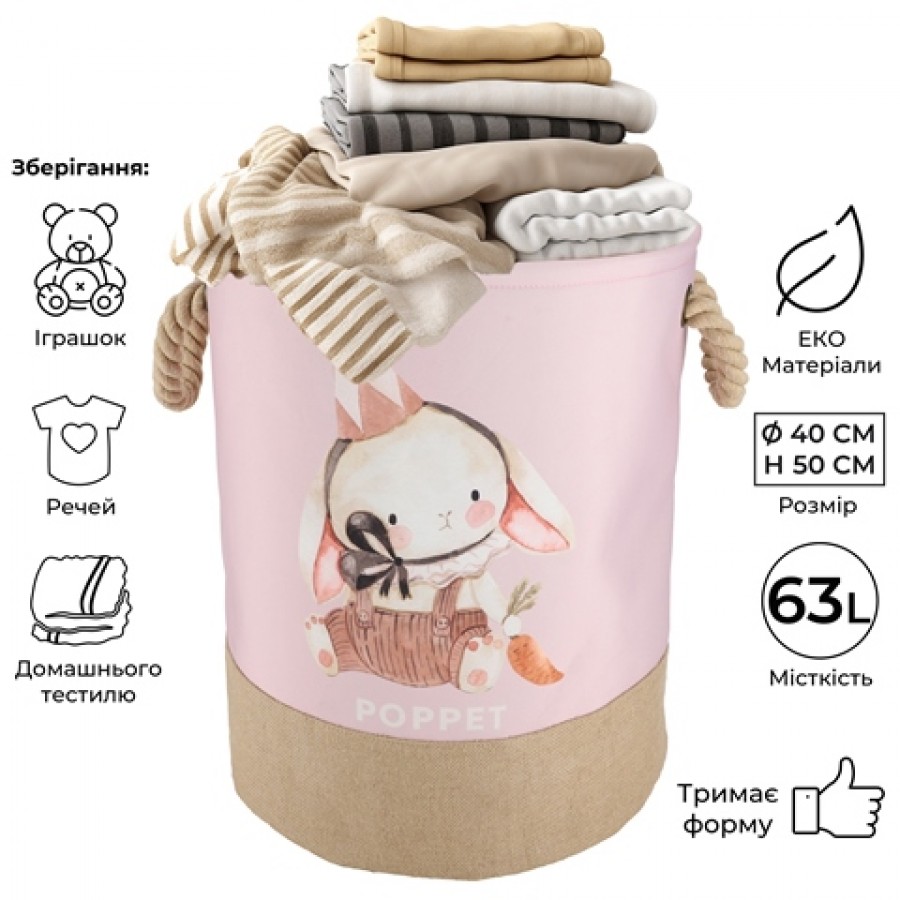 Корзина для хранения игрушек POPPET "Зайчик" - практичный аксессуар для организации пространства, который станет отличным декоративным элементом детской комнаты и приучит малыша к порядку!
