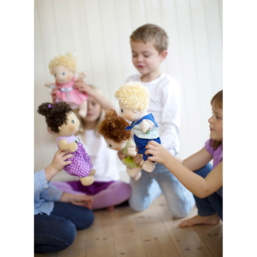- Простой уход — куклу можно стирать в машинке, одежду — вручную.