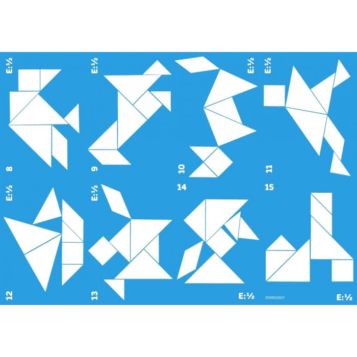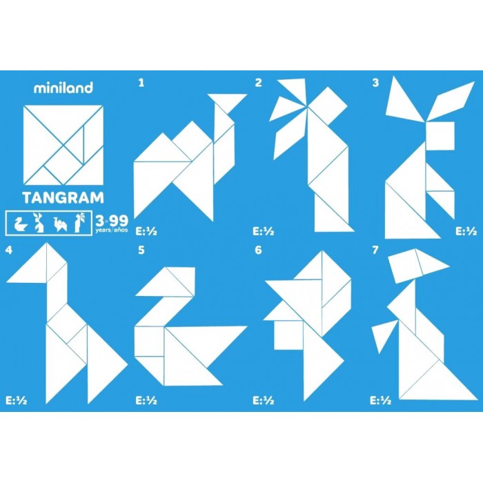 Древняя китайская игра, принцип которой состоит в создании узнаваемых силуэтов из 7 основных геометрических фигур (2 больших, 1 средний и 2 маленьких равнобедренных прямоугольных треугольника, квадрат и ромб), которые вместе составляют квадрат, и дают возможность складывать фигуры самых разных очертаний - фигурки людей, животных, предметов.