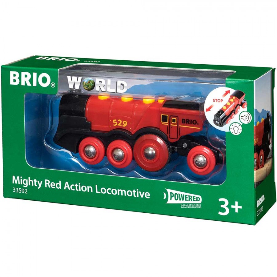 Могучий красный локомотив для железной дороги BRIO на батарейках