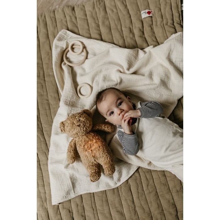 Музыкальный медвежонок MOONIE — это многофункциональная игрушка для спокойного, глубокого и безопасного сна малыша с первых дней жизни. Он сочетает в себе мягкую игрушку, ночник и звуковой модуль, которые помогают ребёнку быстрее засыпать и чувствовать себя в безопасности.