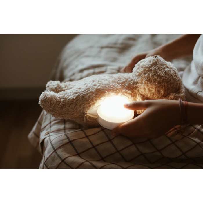 - Встроенный ночник. Медвежонок оснащён встроенным ночником с 7 цветами свечения. Цвет можно выбирать. Светодиодный ночник не нагревается, имеет мягкие оттенки и абсолютно безопасен. Помогает преодолеть страх темноты. Может работать в режиме «без звука». Освещение настраивается в пяти режимах;