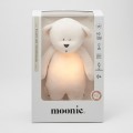 Медвежонок Moonie – мягкая игрушка, в животике у которой притаился светодиодный ночник. Он создает мягкий свет для комфортного засыпания малыша. Подходит детям любого возраста, начиная с первых дней жизни. Moonie издает 5 видов звуков на любой вкус. Каждый из них помогает ребенку чувствовать себя в безопасности и спокойно засыпать.