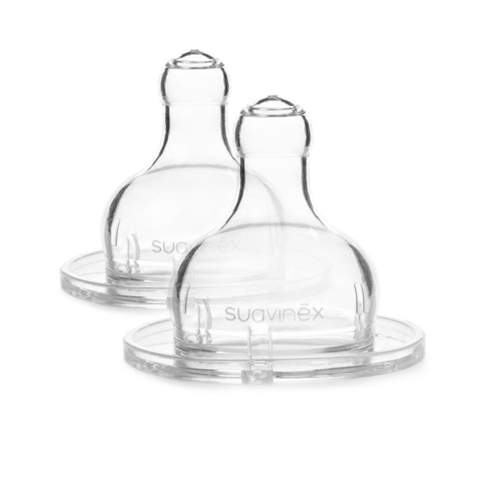Мягкий силикон бережно контактирует с дёснами и ротовой полостью малыша, обеспечивая комфорт во время кормления. Соски легко устанавливаются на совместимые бутылочки Suavinex и подходят для ежедневного использования.