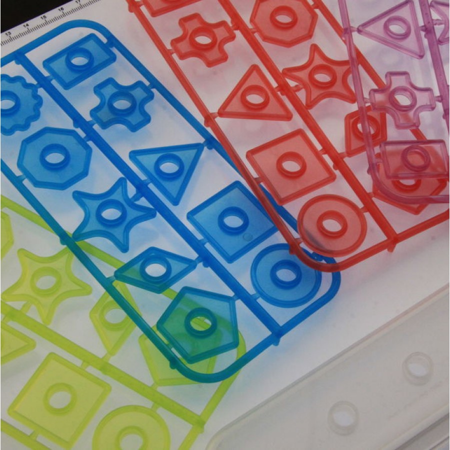 Содержимое: 50 форм, 1 счеты, 2 шнурка, 14 прозрачных игровых карт и 1 брошюра.