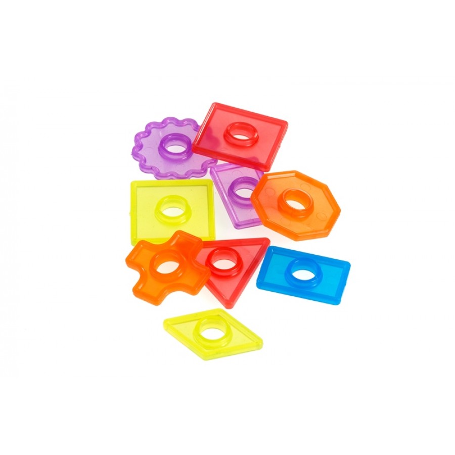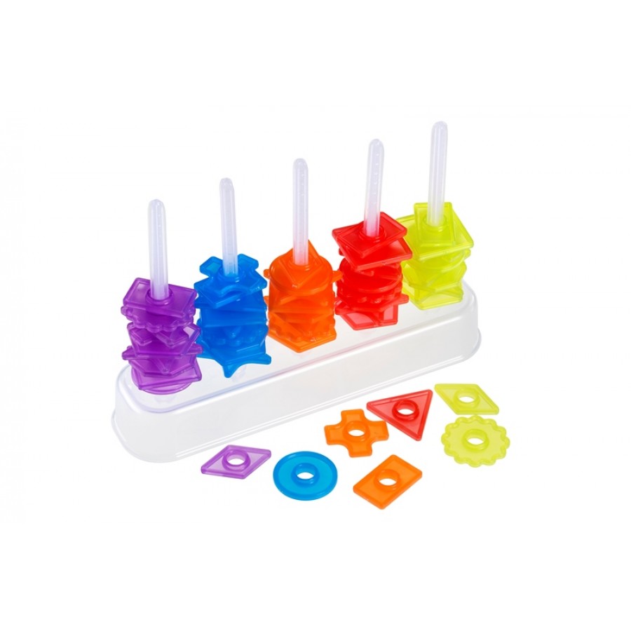 Эти полупрозрачные пластиковые счеты имеют основу из 5 столбцов и 50 фишек разных форм и цветов, которые нужно нанизывать на стержни в заданной последовательности. Сортировка элементов по цвету или форме и нанизывание их на основу, способствует развитию зрительно-моторной координации, внимательности, усидчивости, а также навыков логического мышления.