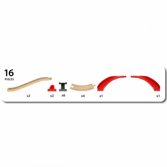 Эти извилистые рельсы добавят скорость, высоту и яркие краски на ваши железнодорожные пути. Вы можете использовать этот набор железнодорожных путей отдельно или встроить его в любой существующий макет BRIO World. Набор состоит из 16 предметов.