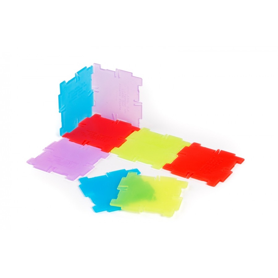 Набор из 56 двухмерных полупрозрачных многоугольников, которые соединяются вместе для построения многогранников и трехмерных объемных форм. Он поставляется с прозрачными карточками с заданиями разных уровней сложности. Набор можно использовать на световых столах и планшетах.