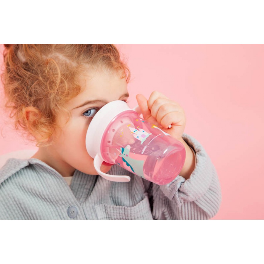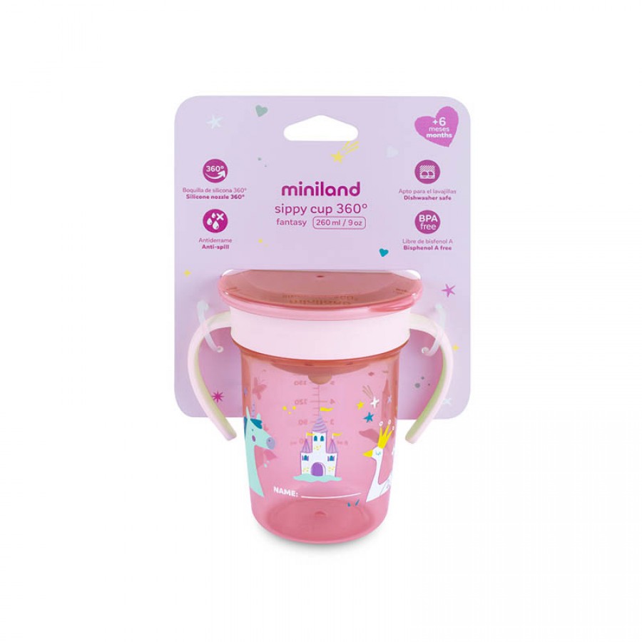 Miniland Sippy Cup 360 Fantasy - надёжный и удобный поильник-непроливайка, который поможет малышу освоить навыки самостоятельного питья.