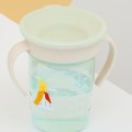 Система 360° в поильнике устроена так, что ребёнок может пить с любого края поильника — со всех сторон, под любым углом. Клапан внутри поильника автоматически открывается при сосании и закрывается, когда ребёнок прекращает пить, что предотвращает проливание жидкости. То есть: