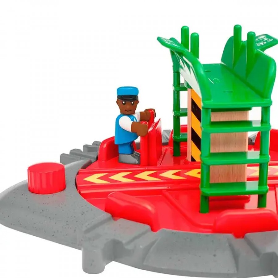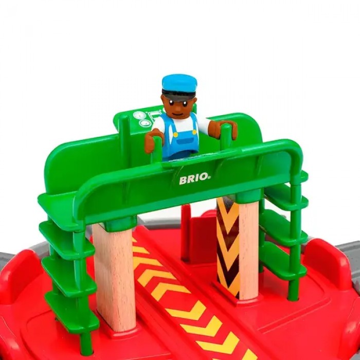 Благодаря семи различным точкам соединения путей, поворотному кругу и фигурке, этот набор станет центральным элементом Вашего города. На поворотной платформе достаточно места для любого поезда BRIO World - просто поверните красную ручку на станции и наблюдайте, как большой центральный блок вращается, пока он не защелкнется в одном из семи положений. Фигурка машиниста поезда готова работать с поворотной платформой со своей двухуровневой станции управления — просто убедитесь, что он крепко держится, когда поворотная платформа начинает вращаться.