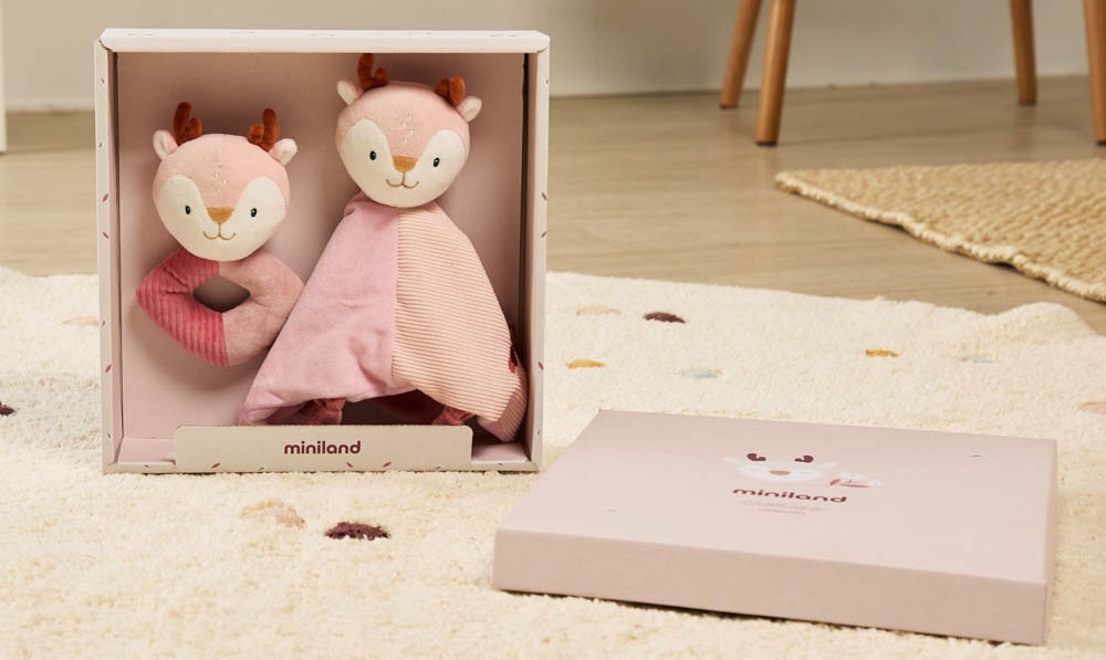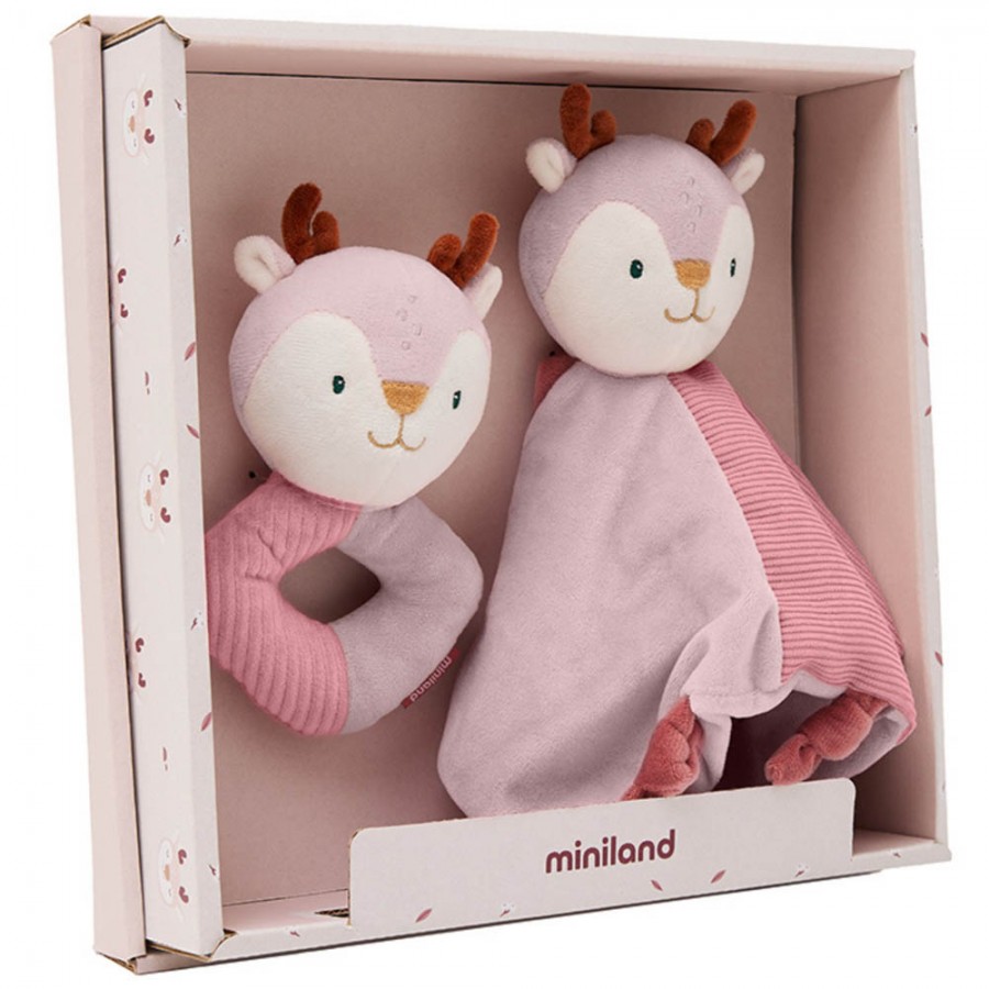 Подарочный набор для младенца Miniland «Оленя» (комфортер + погремушка)