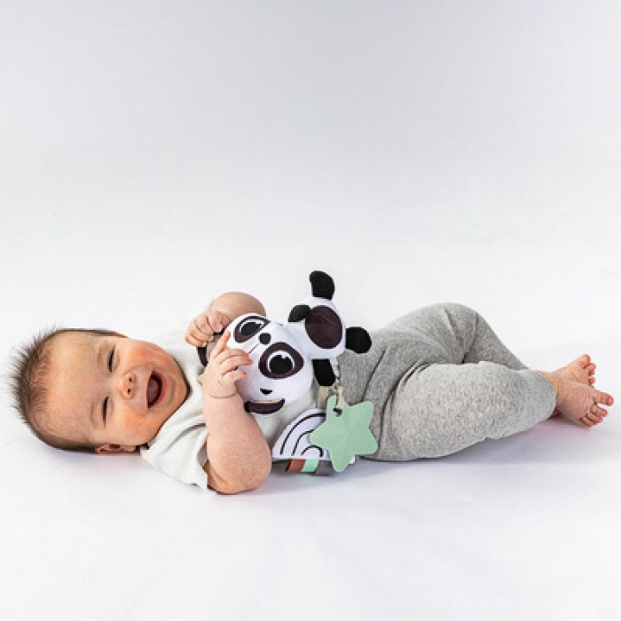 - мягкая погремушка в форме панды, которую приятно обнимать;
