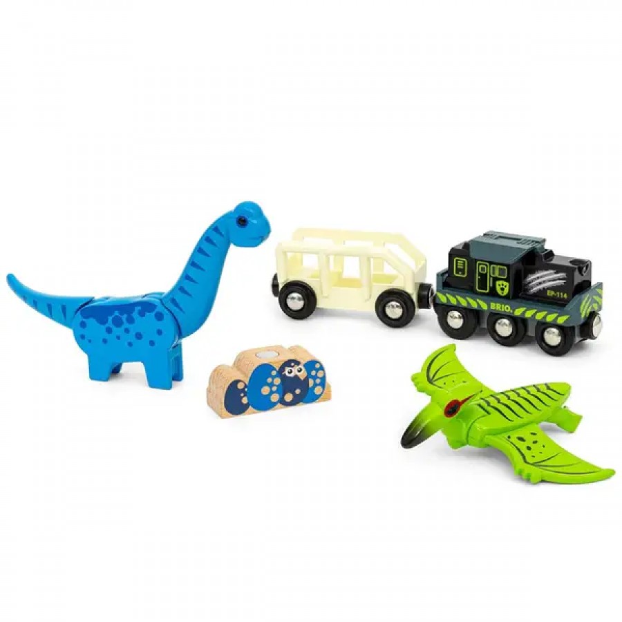Динозавр путешествует по историческому миру BRIO World! Отправляйтесь в доисторическое приключение с набором Поезд BRIO на батарейках с динозаврами (36096). Исследуйте мир динозавров на борту поезда на батарейках с функциями движения вперед и светом. Используйте вагон, чтобы перемещать динозавров и их яйца из одного места в другое.