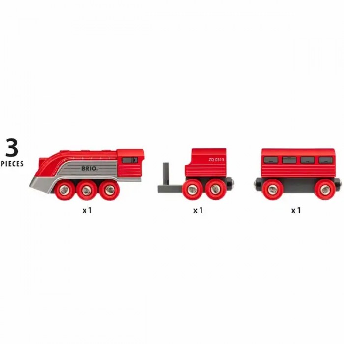 Состоит из длинного переднего локомотива и двух прицепных деревянных вагонов, этот поезд является одним из самых длинных в BRIO World. На самом деле, у него 7 пар колес, а всего их 14! Скоростной дизайн, выполненный в смелых красных цветах с блестящими серебряными деталями, означает, что этот поезд, безусловно, будет выделяться в любом наборе игрушечной железной дороги. Изготовленный из букового дерева, высококачественного пластика и металлических деталей. Дополняйте свой город новыми аксессуарами от BRIO.