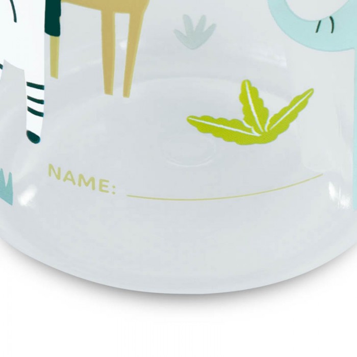 На корпусе есть мерная шкала в миллилитрах для удобного контроля объёма жидкости. Также предусмотрено место для написания имени ребёнка, что помогает избежать путаницы в учебных заведениях и других учреждениях.