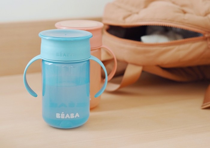 Поильник-непроливайка 360° Béaba (340 мл) помогает малышу мягко и безопасно перейти к питью из взрослой чашки.