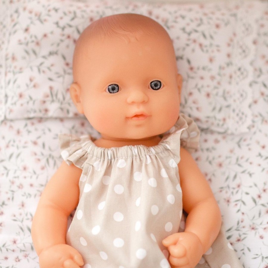 Классическая очаровательная кукла Miniland изготовлена из мягкого, эластичного гибкого винила.